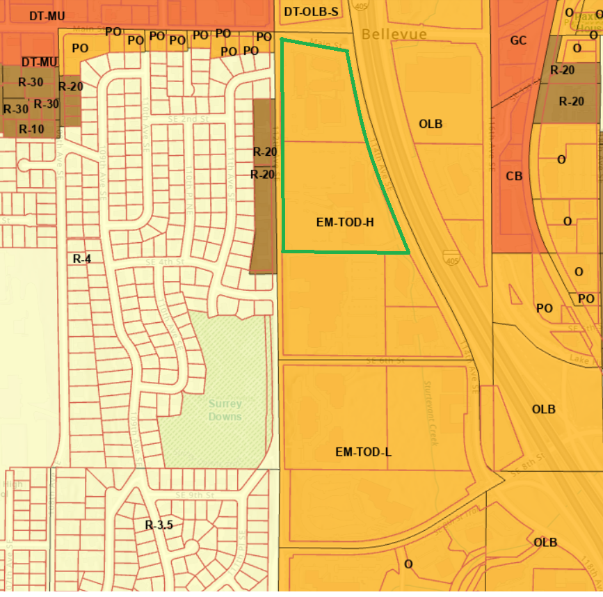 This announcement comes on the heels of recent work by Bellevue City Council to rezone the area to the east of the light rail station for more intensive uses. Months of Council discussions, staff work, and public outreach culminated in a December vote to establish two new zoning designations for the East Main site. Among other items, the vote set maximum building heights and Floor Area Ratios (FAR), designated certain public amenities, and block sizes — all work that defined the character of this redevelopment proposal.