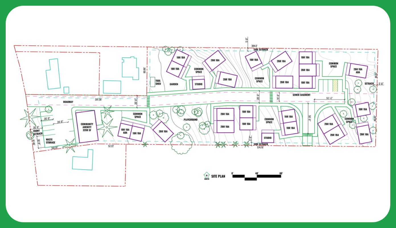 This week ecoTHRIVE received some very good news related to its innovative model of delivering deeply affordable housing, which The Urbanist reported on last year. Washington State Housing Finance Commission (WSHFC) decided to finance their request for a loan through its Land Acquisition Program, which allows developers to purchase land for affordable housing construction at favorable interest rates. With the WSFC loan secured, ecoTHRIVE should be able to close this December on a 1.8-acre parcel in the walkable and transit-connected Burien neighborhood of Boulevard Park. Thus, the organization’s vision of using a limited equity cooperative to create a “resilient village” of 26 cottages affordable to people earning 40-50% of area median income (AMI) moved a significant step closer to becoming a reality.