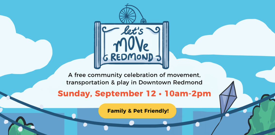 Sunday, Sept. 12th will be an open street festival celebrating safe walking, rolling, and biking in Downtown Redmond, which will welcome Link light rail into the neighborhood in 2024. Let’s Move Redmond is sponsored by Move Redmond an active transportation advocacy group that envisions a more accessible, walkable, and affordable Redmond.