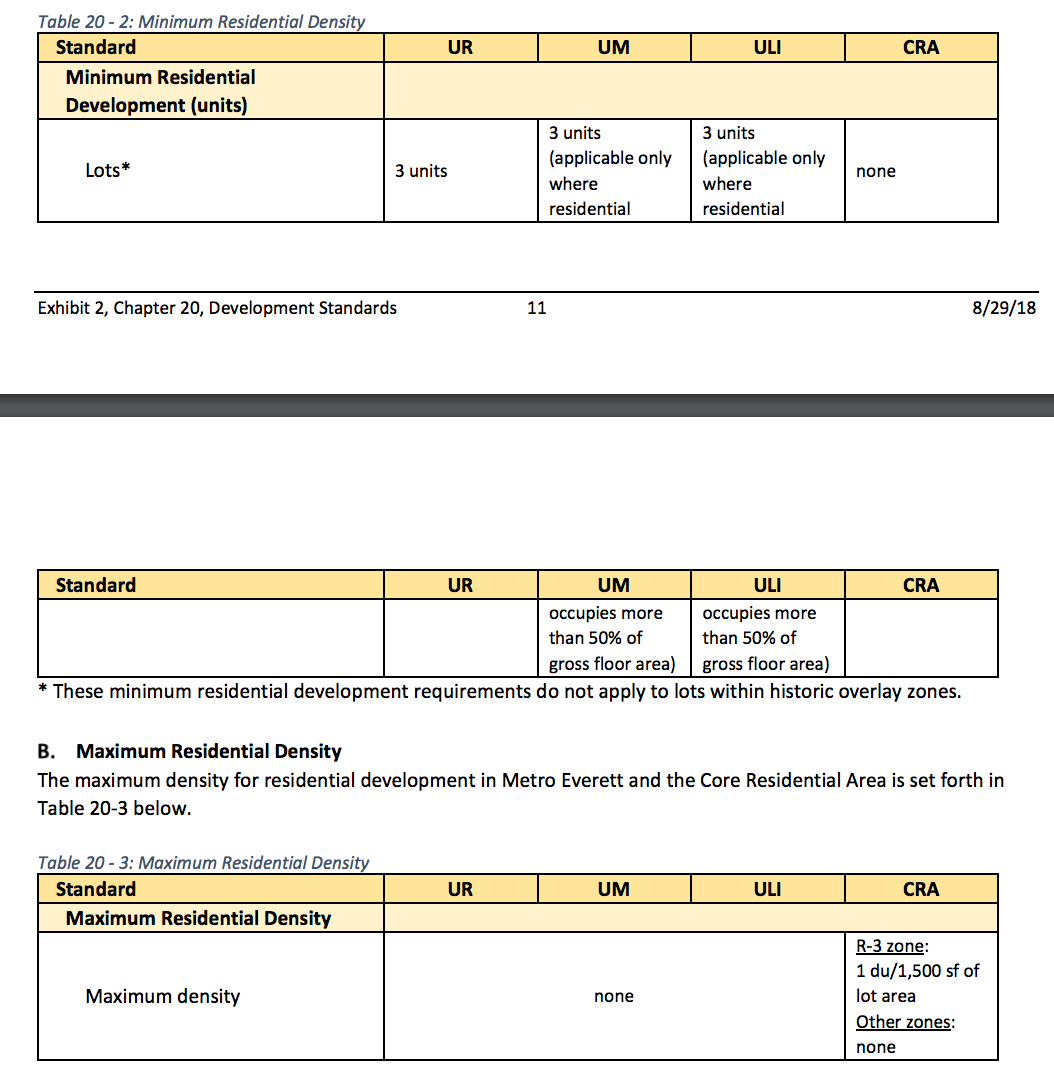 - Residential density. In Metro Everett and the CRA, Everett has adopted differing minimum and maximum residential densities.