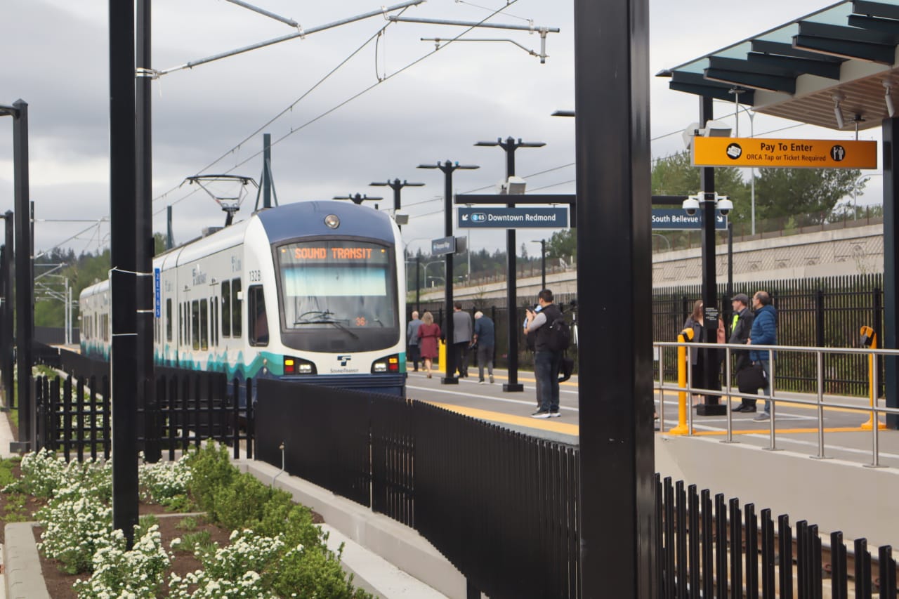 Today light rail arrives in downtown Redmond, as Sound Transit opens a 3.4-mile two-station extension of the 2 Line on the Eastside. Officials and advocates will be on hand to celebrate the occasion, and many groups (The Urbanist included) will be tabling outside of Downtown Redmond Station from noon to 4pm. The formal grand opening ceremony will start at 10:30am, with trains officially rolling north of Redmond Technology Station around noon. If past Sound Transit ribbon-cuttings are any indication, prepare for speeches to run long.