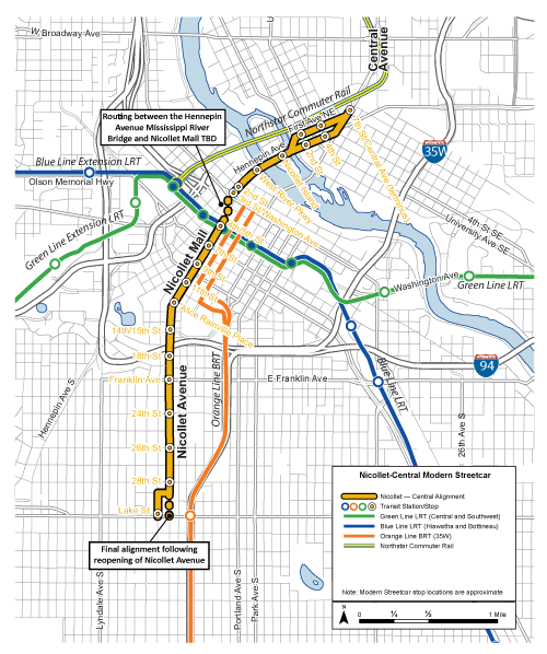 Meanwhile, things appear to be moving more smoothly for Bottineau Light Rail, which would extend the Blue Line to the northwest suburbs and terminate in Brooklyn Park. The alignment leaves much to be desired–mostly avoiding population centers within Minneapolis to bee line for suburban park and rides. Northwest light rail could be turned into a much bigger asset by running it through North Minneapolis rather than through Theodore Wirth Regional Park for no apparent reason other than it’s easy and cheap–the 13-mile extension has an expected cost of $1.5 billion. With the project on track to open in 2022, it seems unlikely policymakers will change course.