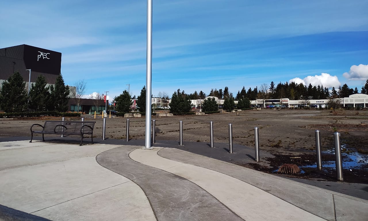 Federal Way has been making moves in fits and starts to turn the area around its transit center into a more dense, walkable downtown area for decades now. In 2007, the city purchased four acres immediately across the street from transit, but the timing of that move immediately before the Great Recession meant that it didn’t move forward and an interim use for the site as a downtown park was ultimately made permanent. Discussions around incentivizing developers to come to “downtown” Federal Way date to even earlier.