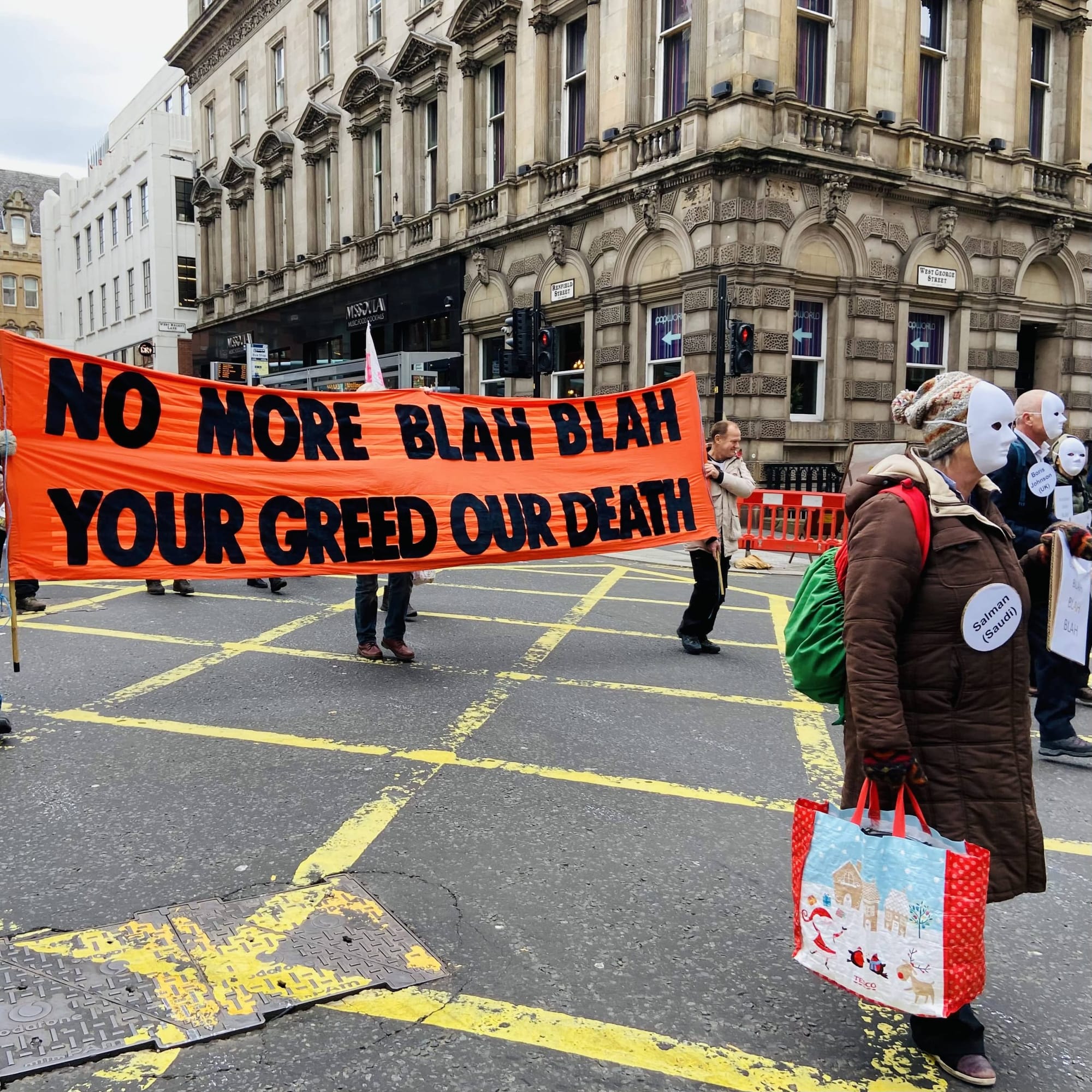 A bank of photojournalists lining the platform, their cameras a symphony of clicking and whirring. Bagpipes squeezing out a mournful tune. Protestors pressing forward, signs in hand. As I stepped off the train in Glasgow on October 30, the energy and urgency of COP26 was palpable. Like the days that would follow, this moment of arrival was equal parts summit, protest, and festival.