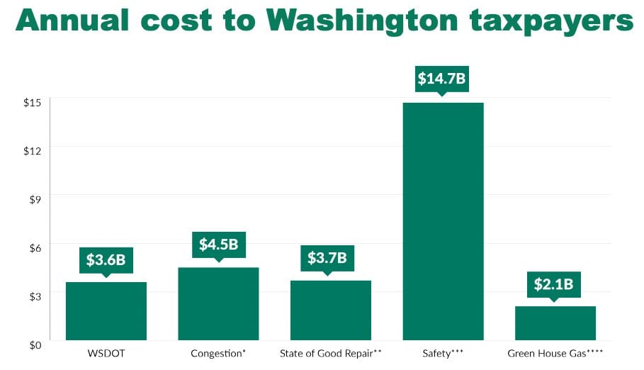 In Washington, someone was killed in traffic roughly every sixteen hours in 2020. Of those fatalities, 44% occurred on state-controlled highways, including high-crash corridors like Aurora Avenue N in Seattle. Secretary Millar, in his introductory remarks to the transportation committees this January, emphasized the importance of making investments in the safety of the state’s transportation system by citing the estimated annual cost to Washington residents as a whole stemming from deficiencies in transportation safety: $14.7 billion dollars annually, over four times the annual budget of WSDOT itself.