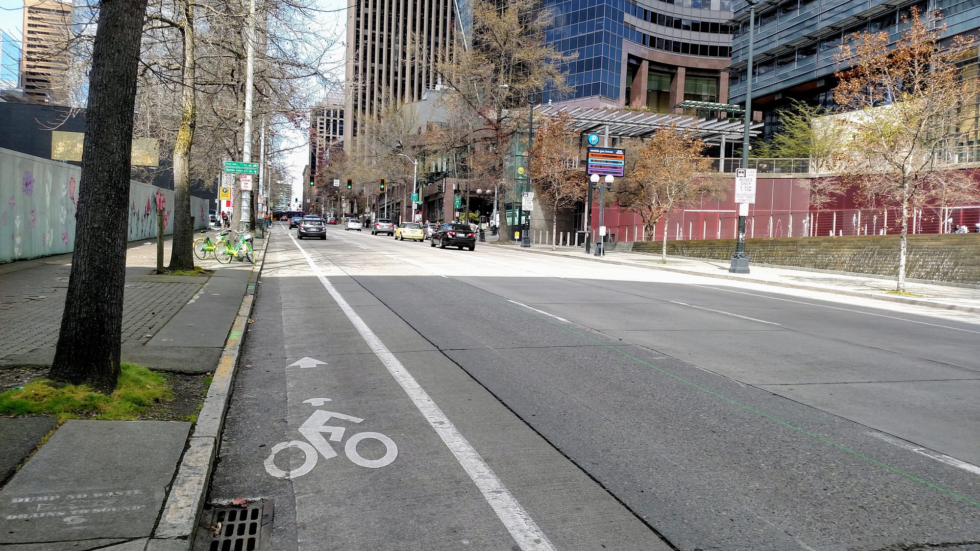 Dilling Way is a tiny stub of a street connecting 4th and 3rd Avenues and basically functions as a small parking lot for the King County Courthouse. Rather than fulfill the clear directives of the 2014 Bicycle Master Plan, which laid out multiple ways to access a north-south route through downtown, we are giving up and just connecting to 2nd Avenue.