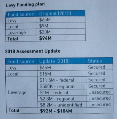 In other words, in a worse case scenario, total bike master plan funding is estimated to be $2 million lower than originally estimated, with some local funding taking the place of most of the unsecured leverage dollars. With additional leveraged dollars, some yet to be identified, total funding could end up being more than originally estimated.