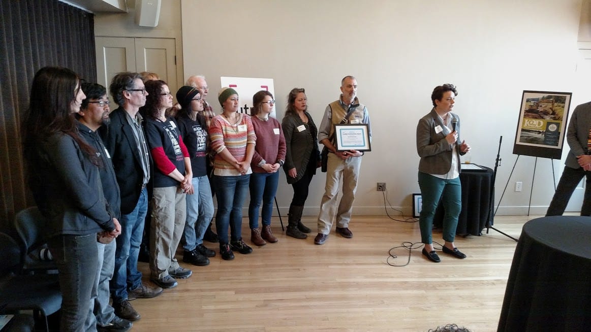 Volunteer Melanie Coerver accepted the award for Beacon Food Forest.