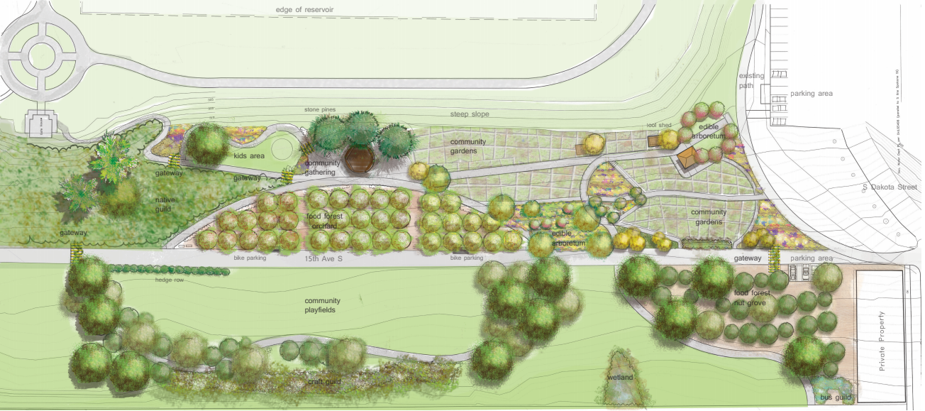 Created on a former grassy area on unused Seattle Public Utilities land, it was initiated as a class project in 2009 and later gained tremendous community and city support. Now, it spans almost 2 acres, has been approved for an additional 1.75 acre Phase 2, and can expand up to a total of 7 acres – an urban oasis in the middle of Seattle’s most diverse zip code.