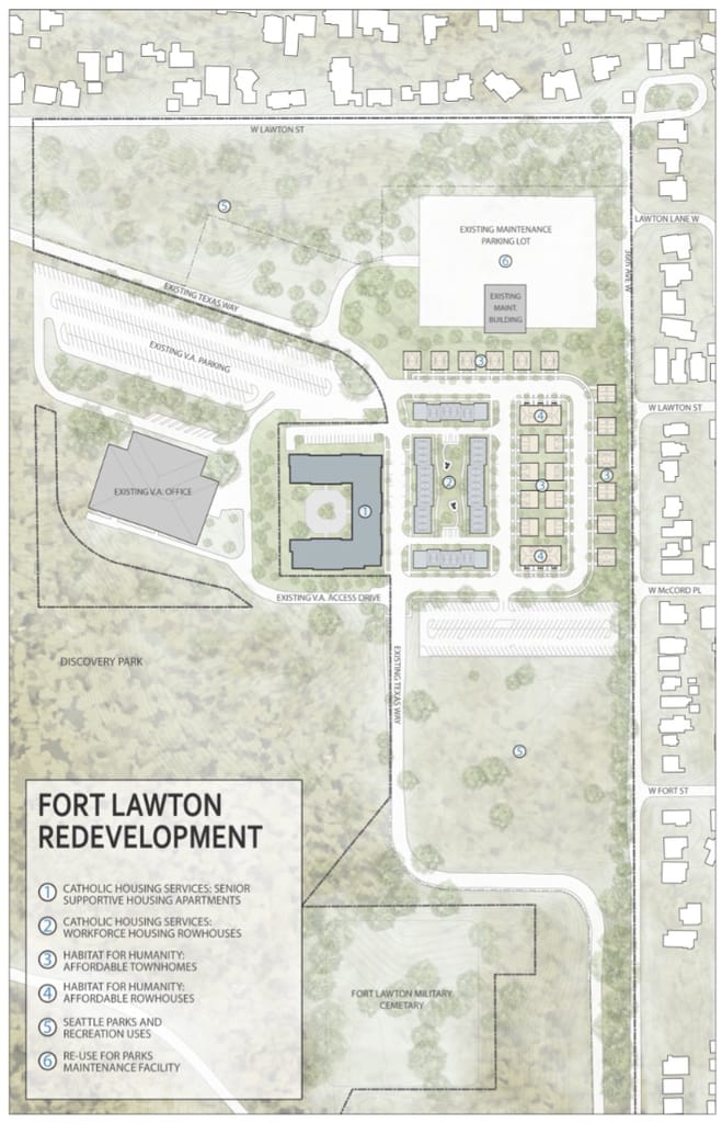 More recently, housing advocates (The Urbanist included) fought to add an affordable housing complex on the last remaining Fort Lawton Army Reserve compound as it is being decommissioned and its 34 acres converted to housing and recreational space, including about five acres to be added to Discovery Park. In 2019, the Seattle City Council approved a redevelopment plan to create affordable housing on the site, with at least 235 homes in the works.
