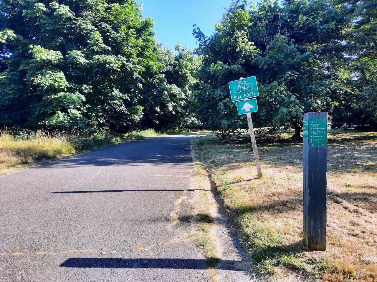 The paved path intersects with Nebraska Street eventually. This photo tour takes a left to double back to the north, but cyclists also have the option to continue on for a Magnolia Loop on Magnolia Boulevard or to explore other parts of the park. Or those who’ve dismounted or not brought their bikes can continue toward the scenic bluff overlooks by Grand Point.