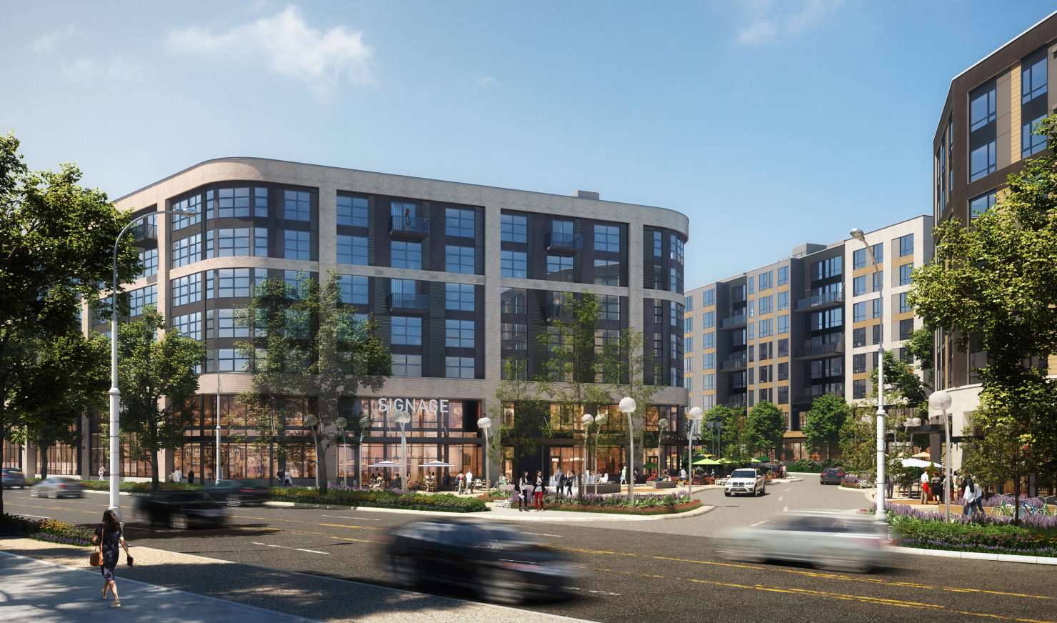 In the meantime, it’s possible to see other mixed-use developments in the varying stages of completion close by. Just across the street is the Melody building by Jabooda, a six-story mixed-use with 186 homes and ground level retail space. Construction workers are putting the finishing touches on the building and units are already available lease.