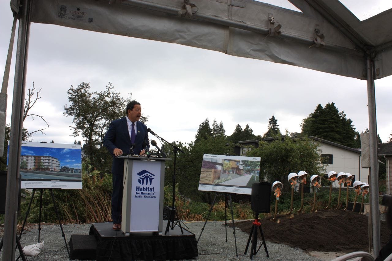 On Monday, Habitat for Humanity held a groundbreaking ceremony for 58 new homes in Columbia City, marking the largest project the organization has ever completed. Lieutenant Governor Denny Heck, Seattle Mayor Bruce Harrell, Seattle City Councilmember Tammy Morales, and an envoy from the Amazon Housing Equity Fund — which helped finance the project — joined Habitat to mark the occasion.