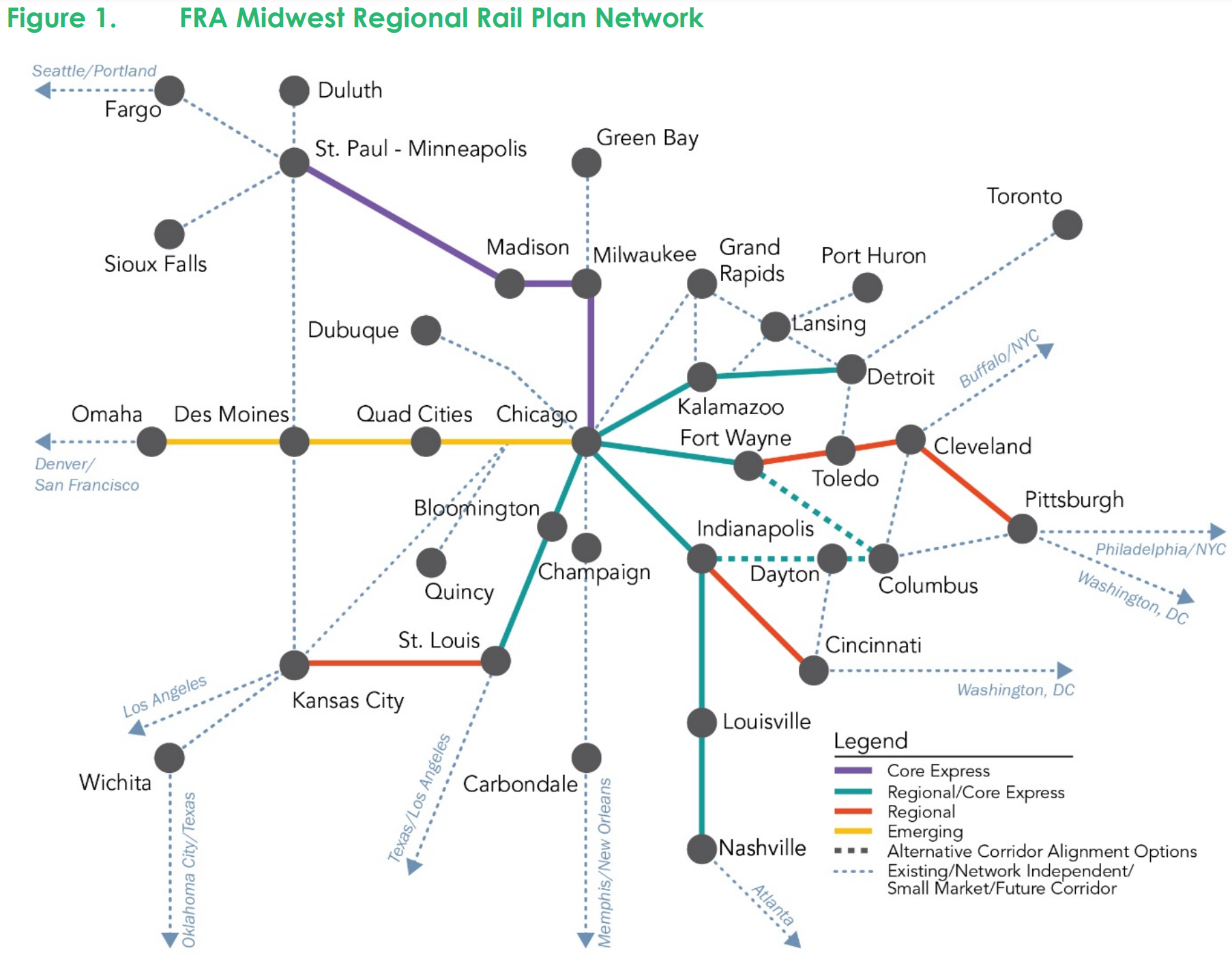A high-speed rail network could dramatically change this situation. And recently, the Federal Railroad Administration (FRA) worked with states and local organizations to lay out what that Midwest network might look like.