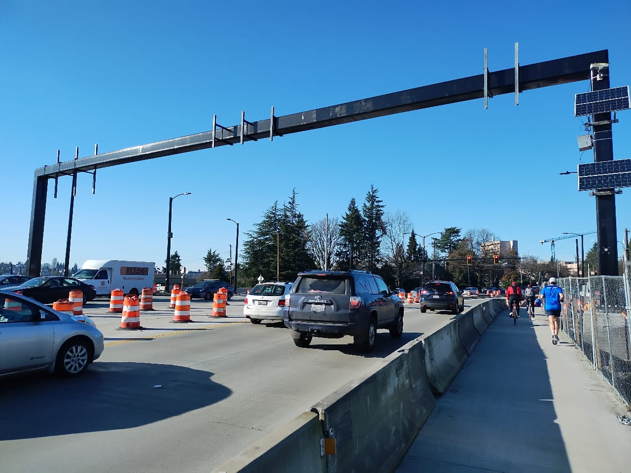 “When I saw those sign bridges go up, I was appalled,” Montlake resident Rachel Ben-Shmuel said in January. “You know, not only were they enormous, but I felt like their potential for inviting people to act as if they were on the freeway before they were on the freeway created real safety concerns for pedestrians and cyclists.”