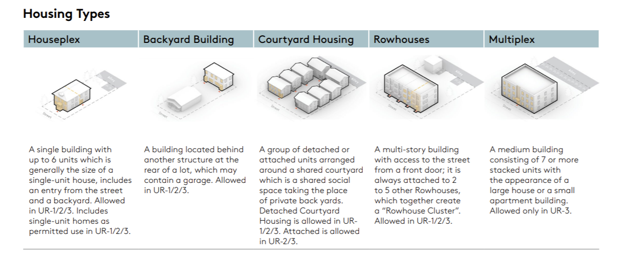 Home in Tacoma seeks to tackle the housing crisis through the allowance of medium density housing, or ‘Missing Middle’ housing, a wide variety of housing types between single family homes and large apartment blocks. This is a category lacking in recent construction in many cities, hence the “missing” descriptor. After years of public feedback and revisions, the City Council approved Home in Tacoma in November 2024, with zoning changes going into effect at the start of February 2025.