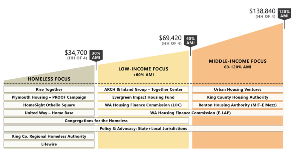 Notable projects supported by Microsoft’s initiative include the first permanent shelter for men experiencing homelessness in Bellevue, Othello Square, a seven story mixed-use project in Southeast Seattle, and 95 Burnett in Downtown Renton, an apartment building close to transit acquired by the Renton Housing Authority.