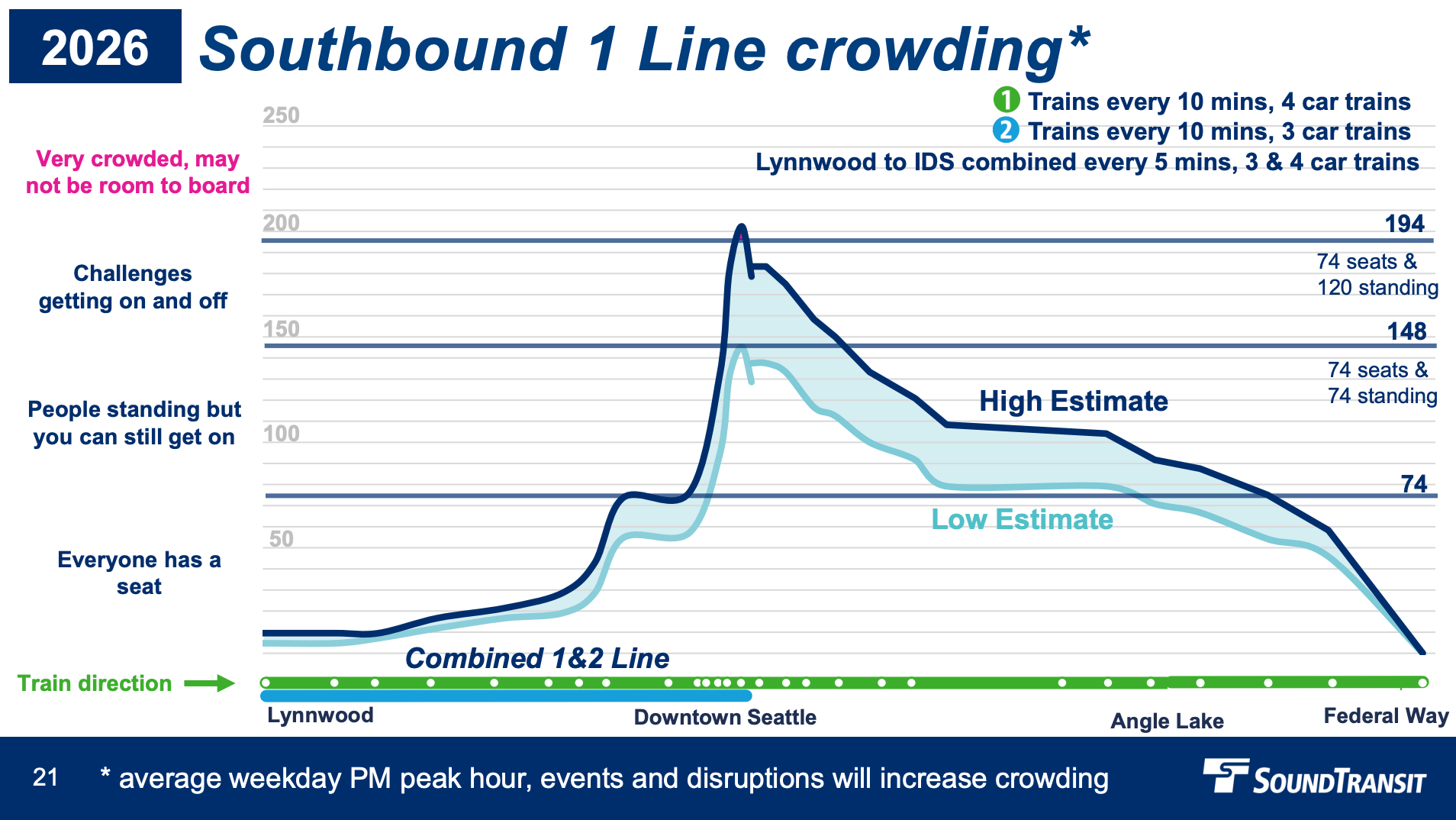 As for other segments, West Seattle, South Bellevue to Redmond, and Northgate to Lynnwood could benefit from five-minute frequencies while Mariner to Lynnwood, Kirkland to Issaquah, and cross-lake service would be closer to every 7.5 minutes.
