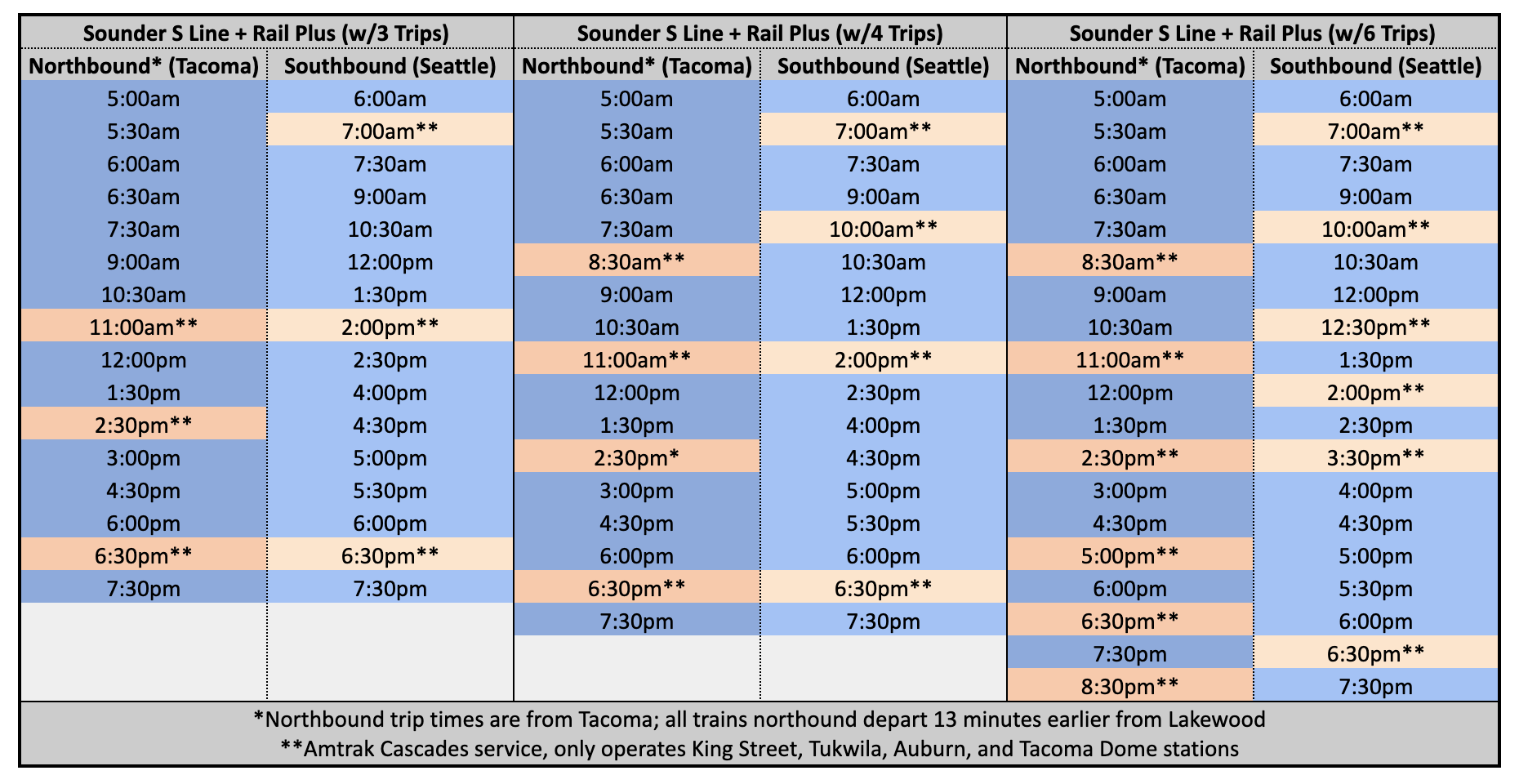 Here’s what the schedule could look like if Cascades trips were designed to align with Sounder service and facilitate Rail Plus: