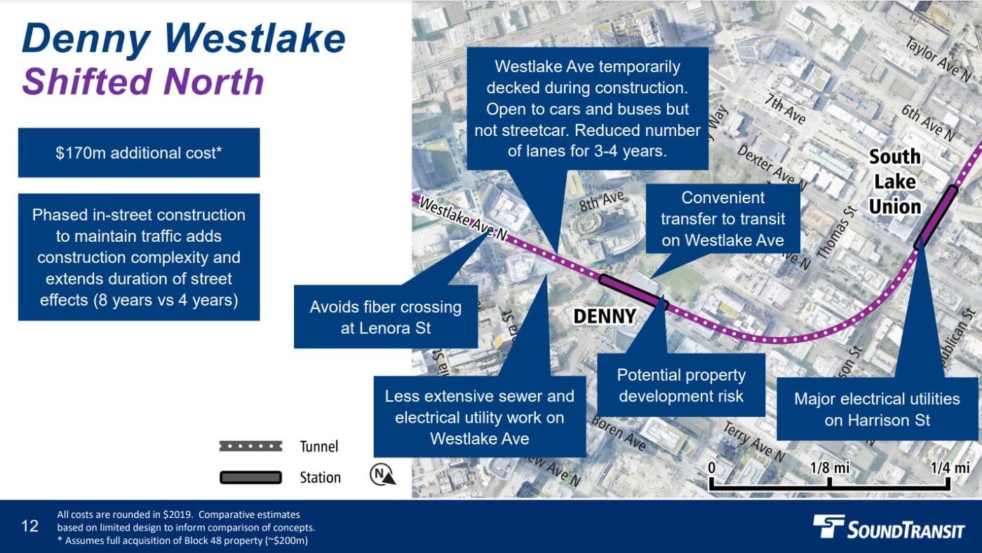 But in recent months the Sound Transit board has started exploring options for light rail in South Lake Union that would consolidate the planned two stations in the neighborhood into one at Denny Way, eliminating a Harrison Street station that would make that transit mall idea truly worthwhile. Seattle Mayor Bruce Harrell has backed away from that idea in recent weeks, instead supporting the “shifted north” option for Denny Station that would retain two stations.