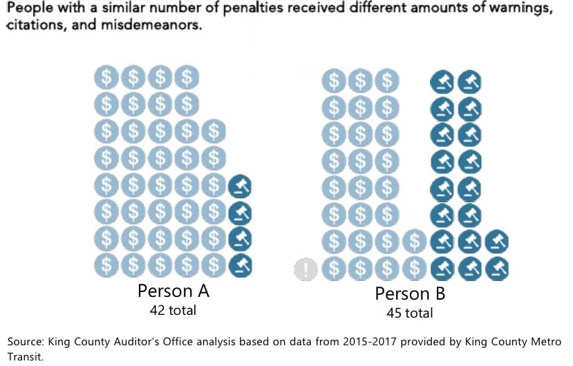 On Wednesday, King County Metro Transit announced fare enforcement changes to promote more equitable outcomes for riders. The changes come on the heels of recommendations by the King County Auditor’s Office that laid out very concerning data suggesting people experiencing homelessness bear the brunt of citations and misdemeanor referrals. These people have the least ability to pay, highest need for mobility assistance, and most to lose by having charges on their record.