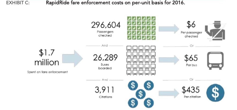 - “Transit should conduct a rigorous fare evasion study to understand the level of fare evasion on RapidRide at least every two years.”