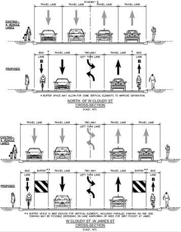 Kent is also moving to implement rechannelizations — which it’s calling “road diets” — on some of its other overbuilt arterial streets. S 260th Street and S 259th Place, underneath I-5 on Kent’s West Hill, has lanes so large that it won’t even take away any to create room for bike lanes. And 4th Avenue N, connecting underneath SR 167 north of downtown, will see two lanes in each direction modified into one with bike lanes and a central turn lane — copying a successful model for rechannelizations that has been implemented in Seattle for over a decade.