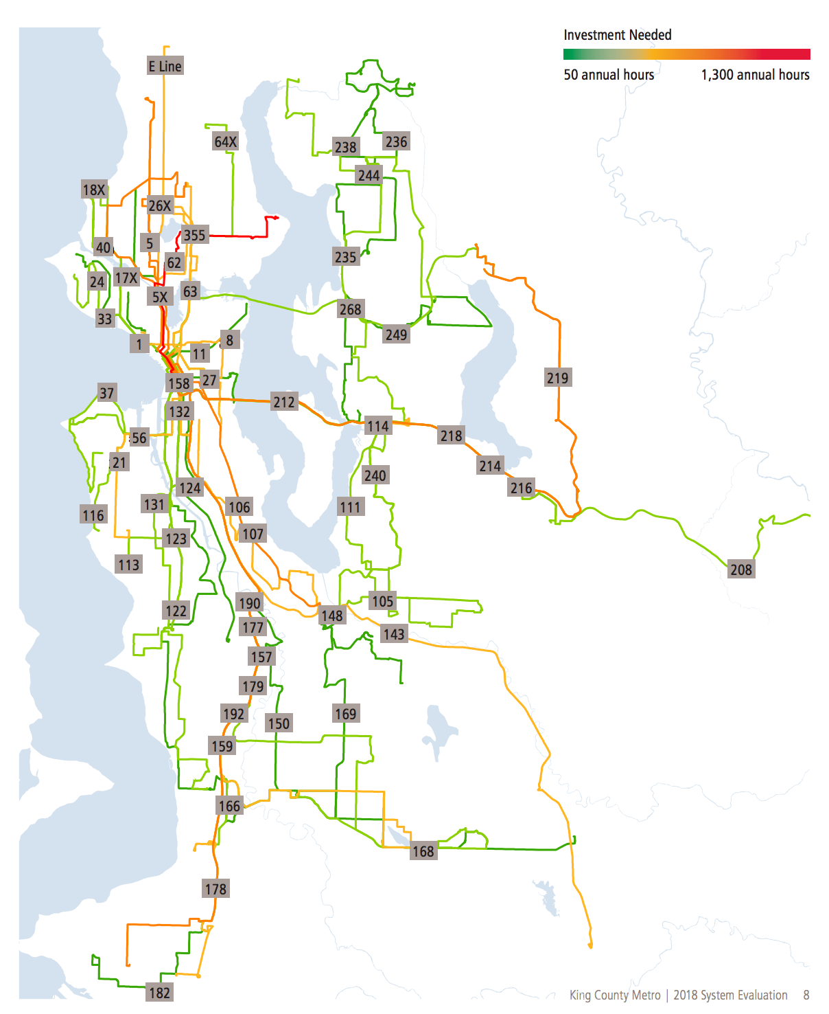 King County Metro recently received approval of its annual system evaluation. The 2018 report highlights where Metro needs to make investments to meet the Service Guidelines. There are three levels of priority that the Service Guidelines establish for investment: