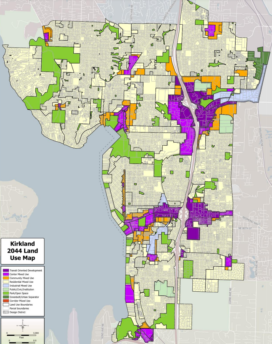 By a 5-2 vote, the Kirkland City Council last week approved a modest update to its 20-year growth plan, which doesn’t rock the boat too much, but could lead the city in the direction of creating more vibrant neighborhoods. The Kirkland 2044 plan (K2044, for short) mostly represents a continuation of the city’s current trajectory: focusing the most intense development in the areas of Kirkland close to current and future transit.