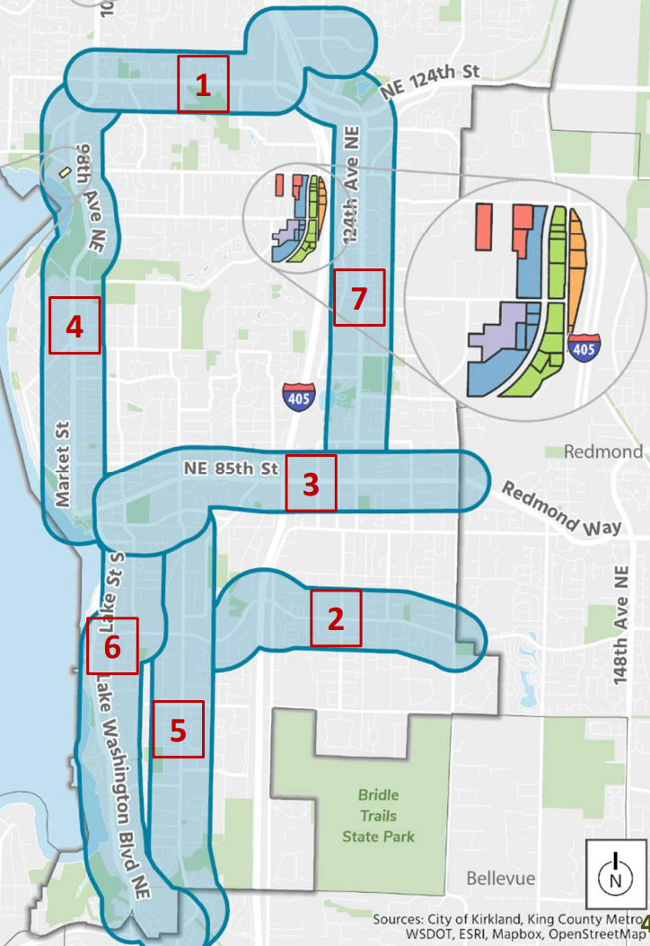 King County’s Affordable Housing Committee (AHC), as part of a first-ever review of local Comprehensive Plans to ensure they’re better aligned with the county’s overarching affordable housing policies, praised the transit corridor proposal in a letter approved late this summer. “Kirkland’s draft plan prioritizes transit-oriented development and lays a foundation or increasing densities sufficient to maximize transit investments in the city and increasing income-restricted housing within walking distance of frequent and high-capacity transit,” the committee wrote. “The AHC strongly supports the future addition of a Frequent Transit Corridor Overlay to the City’s land use strategy, which would add capacity for ‘higher-intensity residential uses’ along identified frequent transit corridors.”