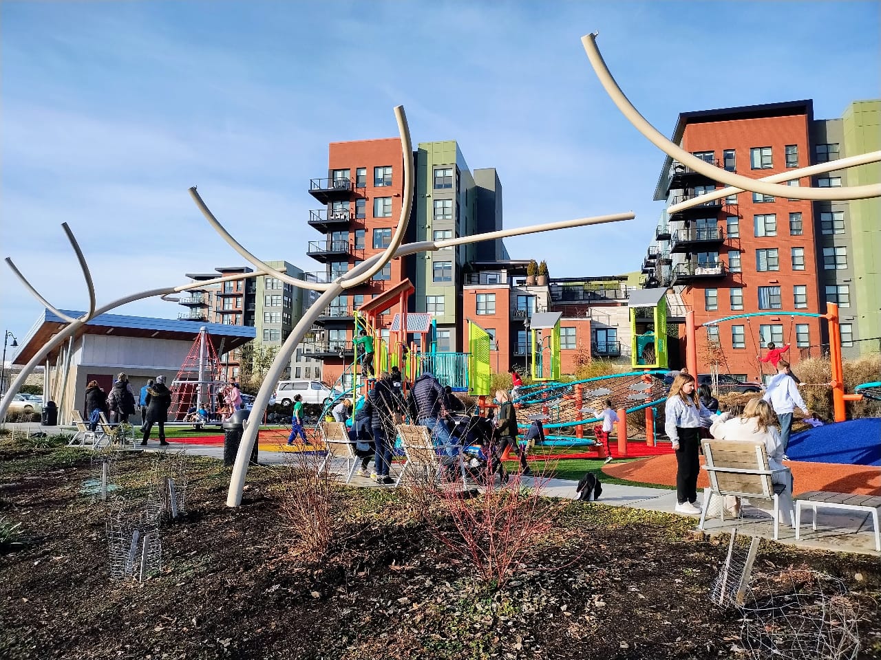 The concept of a 10-minute city or a 15-minute city or neighborhood has taken off in recent years as a way to explain all the elements needed for a complete neighborhood, in contrast with a car-dependent one. Downtown Kirkland, with plentiful transit, grocery stores, restaurants and health clinics all within a quick walk, bike, or roll of each other is a clear 10-minute neighborhood. Totem Lake is another example, as Kirkland has taken steps to add parks and open space to this growing commercial center built around a former shopping mall.