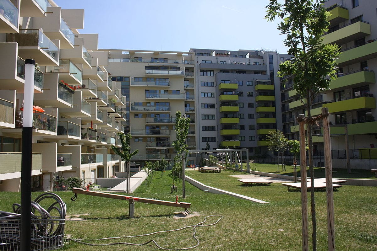 I know what you’re thinking… Can trains and housing even co-exist? Naturlich. They coexist all over the world, quite densely, even. Yes, there are pollution issues. This could be partially mitigated by requiring all projects to meet passivhaus so there is little air leakage, and all air is filtered. That passivhaus is a buoy against energy poverty only adds to the resilience here. There are other things that can be done, like putting circulation on the train-side, as a buffer against the noise. This was the approach for a large passivhaus social housing development adjacent a railyard in Vienna.