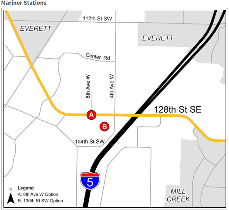 Details of the station options are laid out below. The stations are scheduled to arrive with Everett Link extension in 2036–although theoretically they could arrive sooner if the project were to be split into two phases.