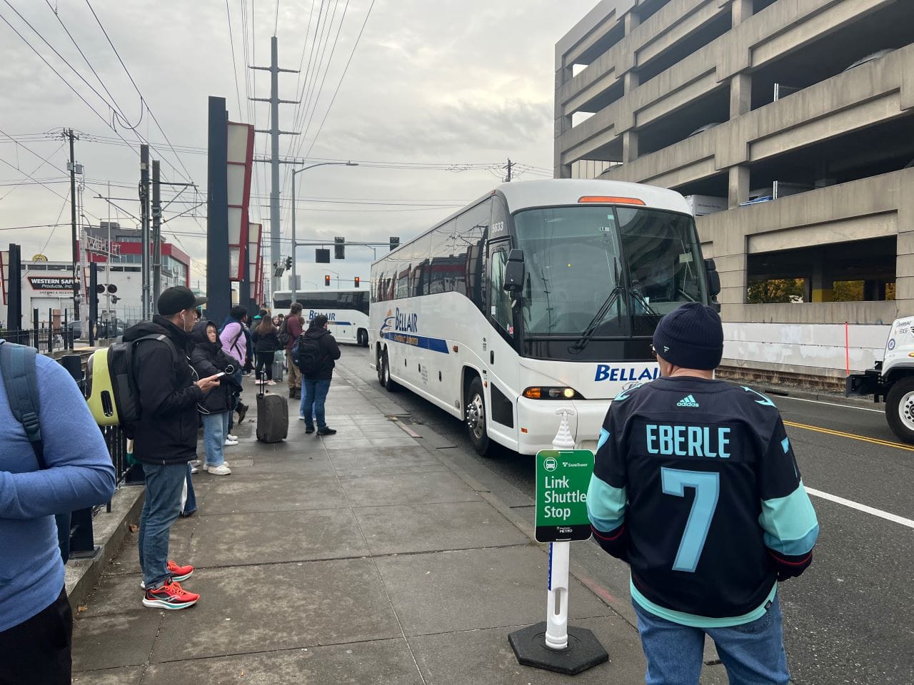 “Was at CID Station to catch the Northgate Shuttle and to check out [operations] in real time and on site,” Timm said in a tweet. “Bus was too packed to get on. Had to wait for a couple. The supporting Bel Air charter buses are hard to identify as Link. If you need to ride, consider @KingCountyMetro this weekend!”