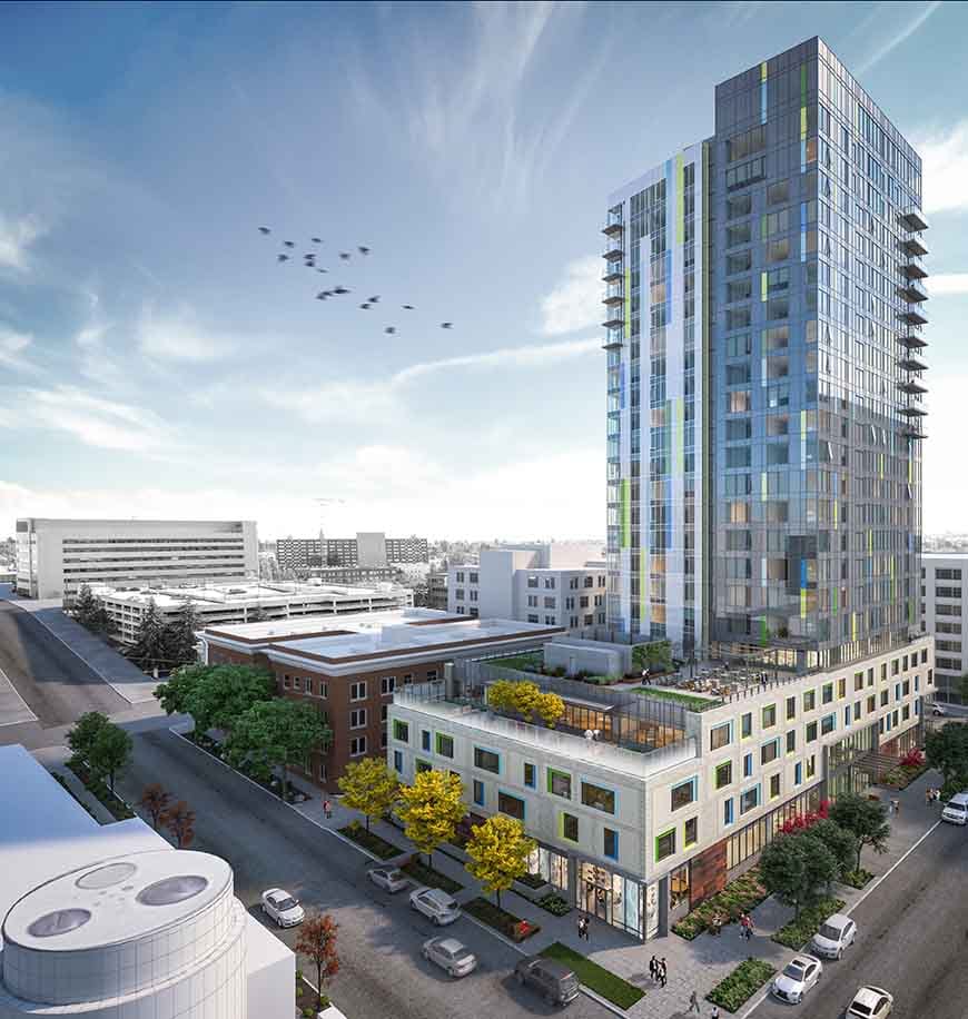 1400 Madison Street was originally planned as the site of the First Hill light rail station. After it was cut from ST3 plans, the land was transferred to affording housing providers, Plymouth Housing Group and Bellwether Housing at zero cost.