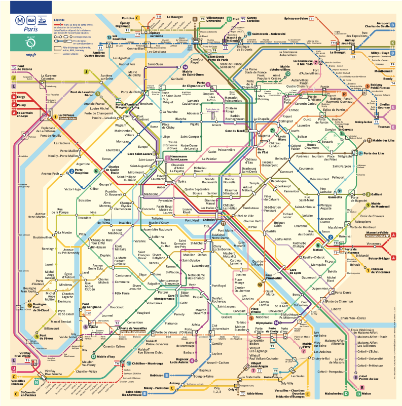 To get a sense of how transformative the project will be, let’s first look at Paris’s existing public transportation network. The current network is made up of different elements which each compliment each other and serve meet slightly different needs. Within the city of Paris, the Métro and, to a much lesser degree, tram system provide very comprehensive coverage to transit riders. Buses are also integrated into the network, and move people both within the city and its suburbs.