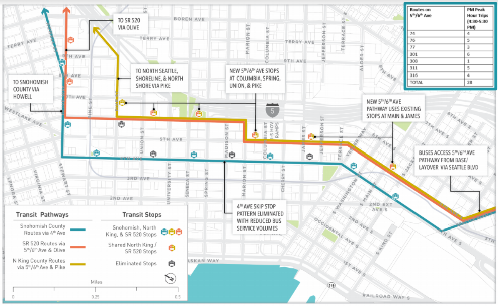The period from 2021 to 2024 may still be a constrained and congested time. Northgate Link is expected to provide relief when it opens in 2021, because more people will arrive by Link rather than in buses competing for limited bus lane space Downtown. Still, many commuter buses from the northern suburbs will continue Downtown rather than truncate at Northgate Station judging by early planning. It won’t be until Lynnwood Link and Federal Way Link opens in 2024 that the number of commuter buses Downtown will drop in a significant way.