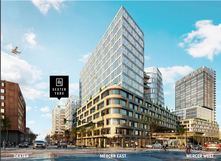 Seattle-based developer Touchstone proposed two undulating towers for the Mercer blocks and a blockier structure for the Dexter block. The towers are reminiscent of these two wavy towers under construction in Denny Triangle. The Dexter block would have 225,000 square feet of housing plus a 320-seat theater. The Mercer blocks would have 715,000 square feet of office space and a small elementary school composing another 46,000 square feet–enough for about 250 students. Touchstone said it had been in talks with Seattle Public Schools but left open the possibility of a private operator.