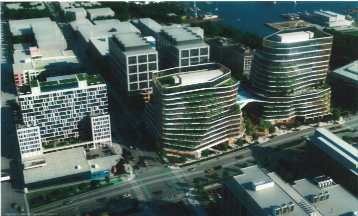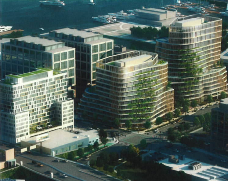 New York-based developer Tishman Speyer invested less in rendering designs that the other developers did. They offered two massings and that was about it. The all market-rate proposal includes 1.1 million square feet of mostly office development on the three blocks (and three underground levels of parking) while the affordable housing included proposal has 900,000 square feet of mostly office in the two blocks, with the third block (615 Dexter) set aside for affordable housing.