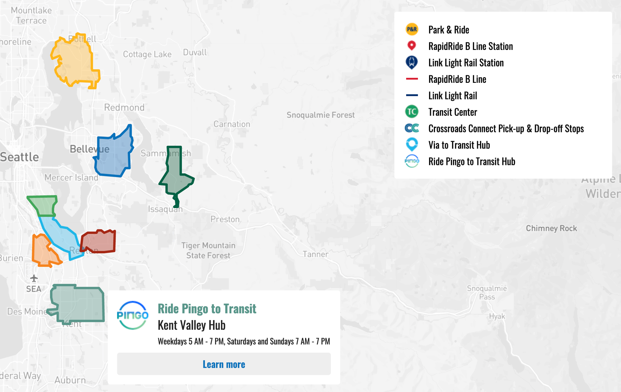 In a statement, Kent Mayor Dana Ralph praised the new service option. “Connecting our community with a diverse set of transit options continues to be a priority of ours at the City of Kent. Ride Pingo to Transit will provide much needed access to public transit for Kent residents that is affordable and flexible,” she said. “This service will empower our residents to better access our transit hubs and work in the Kent Valley and beyond. I’m very excited about the launch of this new service and am looking forward to trying it out myself!”