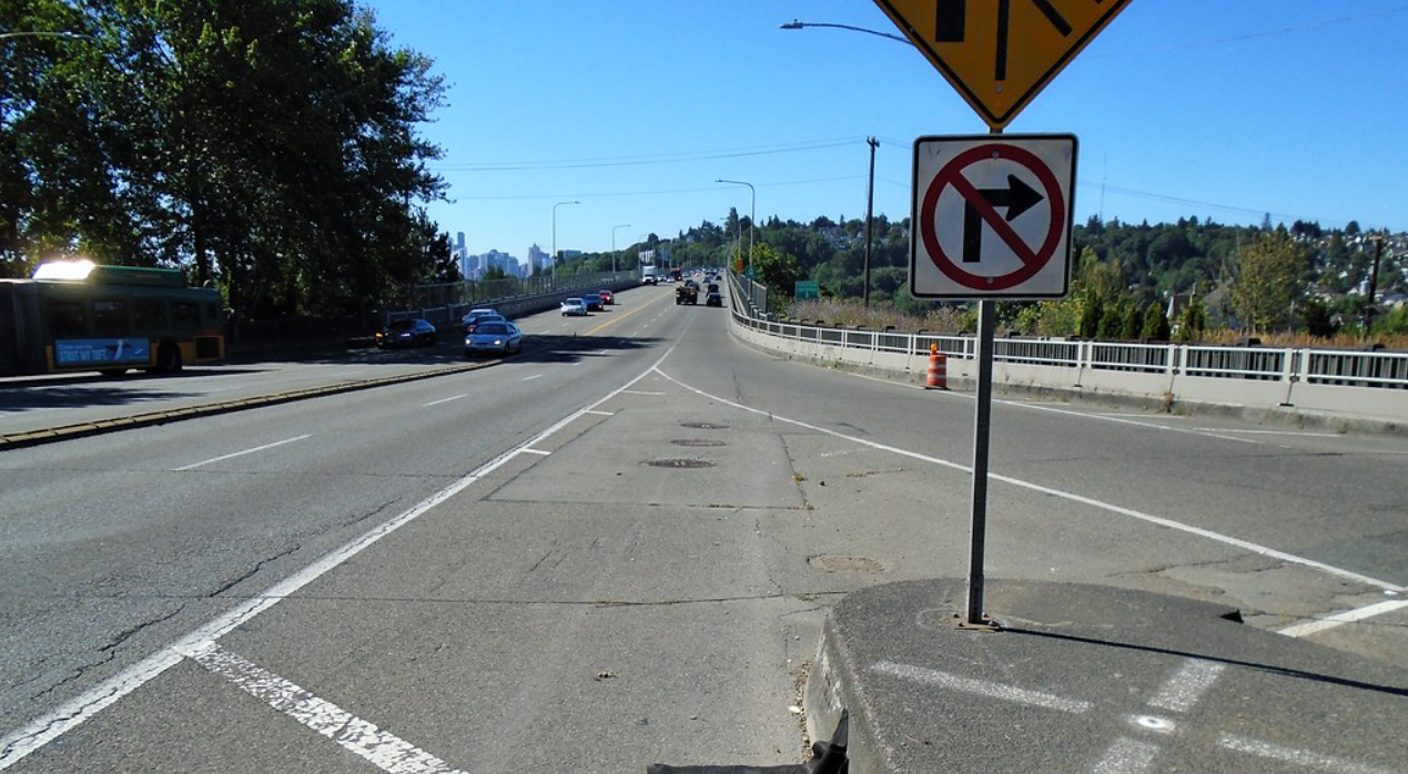 The 2022 report studied the impact of transit lanes along the congested Aurora bridge over the Fremont Cut, and concluded that, along with some other upgrades along the route, bus travel times could be boosted by 10%. But transit lanes on the bridge could prove technically tricky. The structure’s width means current travel lanes are fairly narrow, which leads to most coaches straddling two lanes for the extent of the bridge. Creating true transit-only lanes on the Aurora bridge could leave only one travel lane in each direction, a politically dicey proposition.