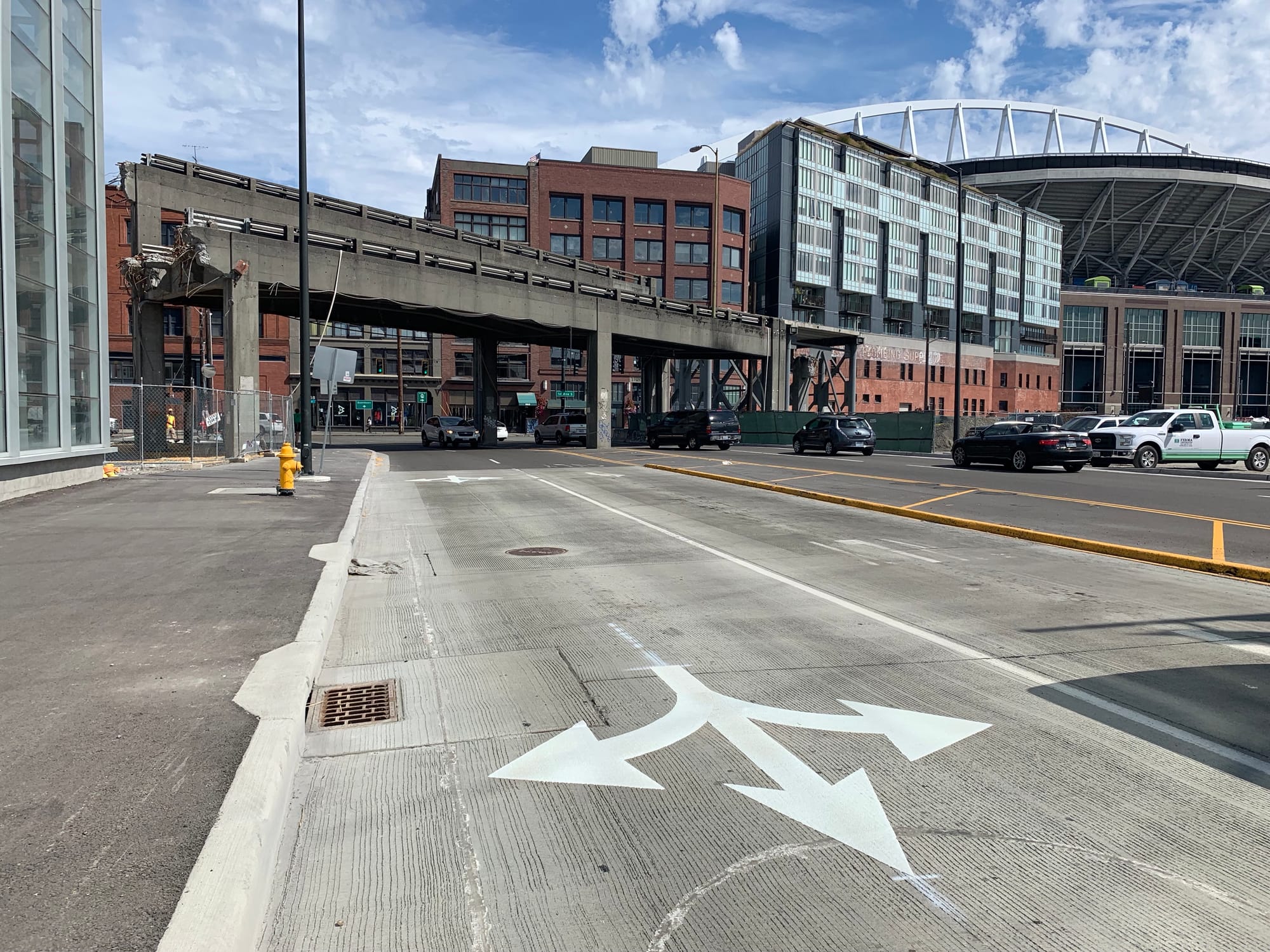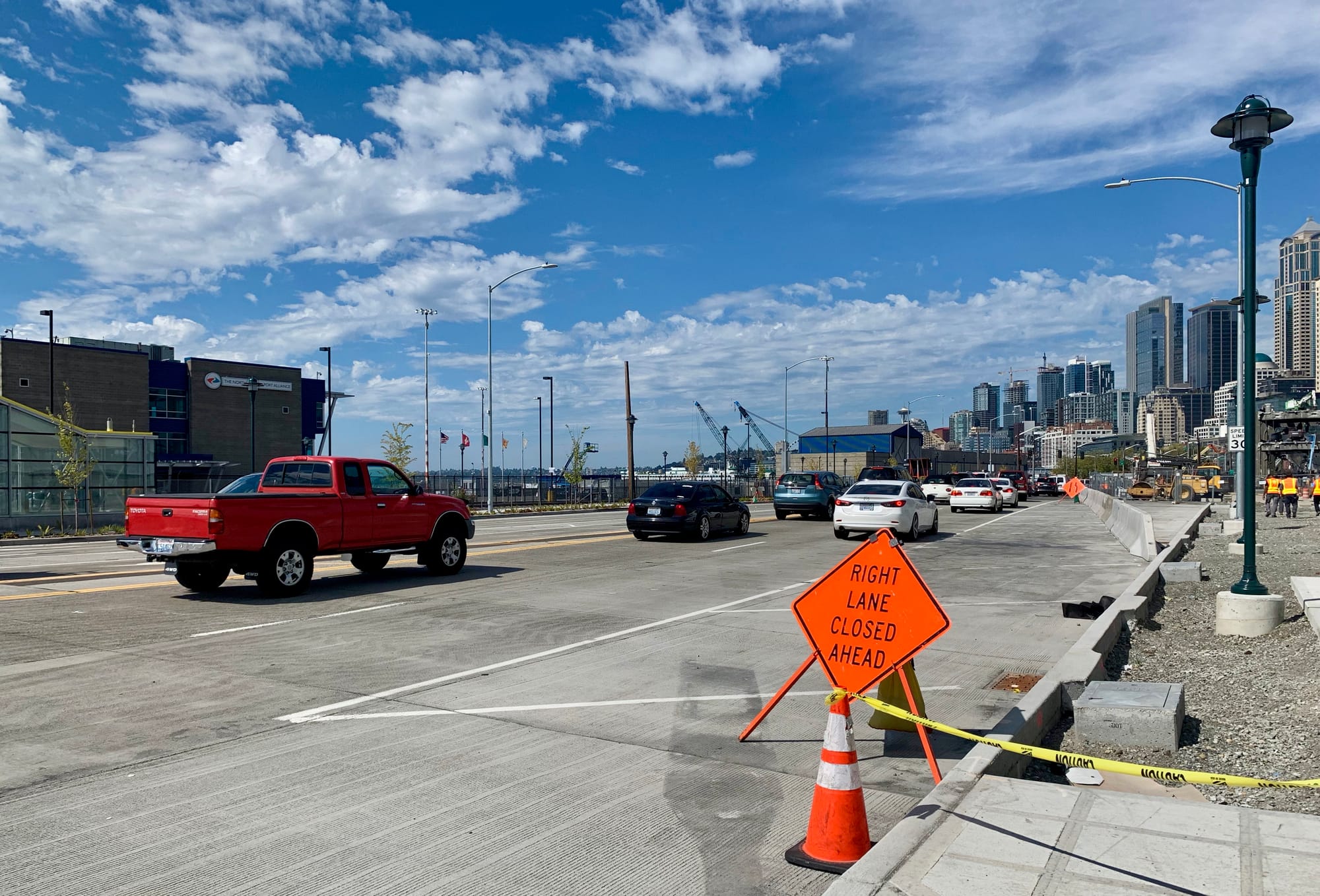 Another piece in this complicated traffic engineering puzzle is the intersection at 1st Avenue S and S Dearborn Street, where a hulking remnant of the Viaduct still awaits demolition. Metro and SDOT have pledged to hold off demolition until two lanes of traffic are open either way on Alaskan Way. But even if that construction results in a slight delay, Metro has asserted that its planned short-term northbound routes of lines 21X, 55, 56, 57, 113, 120, 121, 122, 123, 125, and RapidRide C Line will begin on September 12th and are anticipated to last until September 21st.