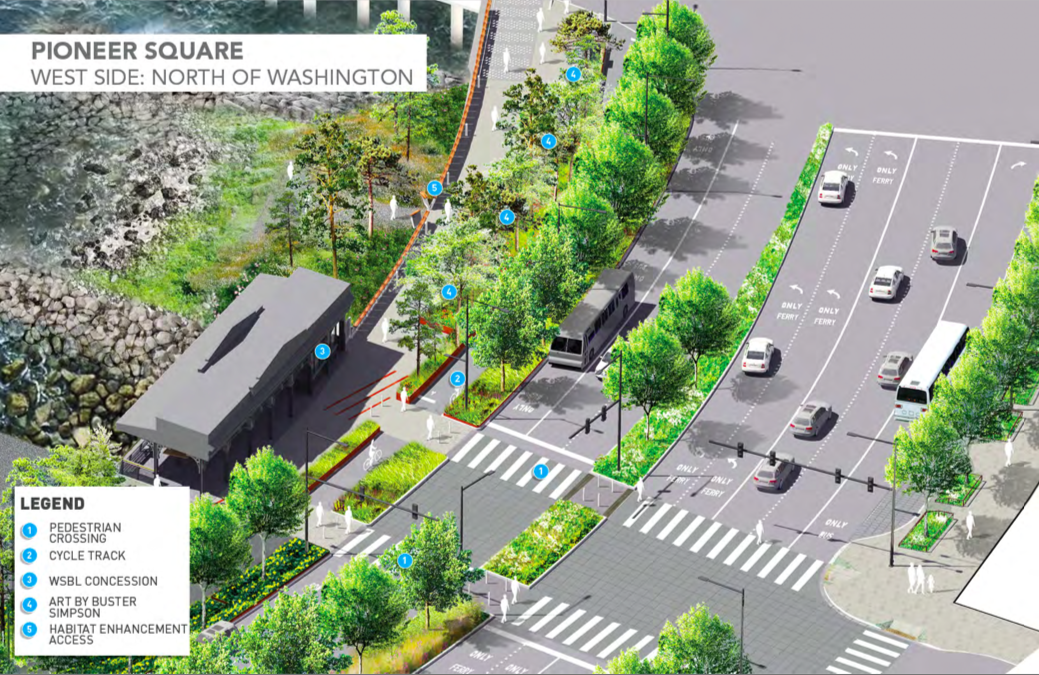 West Seattle-area transit riders are eventually supposed to receive congestion reprieve. Several of the planned Waterfront Seattle improvements, such as dedicated transit lanes on the southern portion of the future Alaskan Way megaboulevard, ferry queueing lanes the Colman Dock Ferry Terminal, and the future two-way transit only Columbia Street, are targeted at improving mobility for transit riders through this important corridor. But the new Alaskan Way boulevard won’t fully open to traffic until 2021.