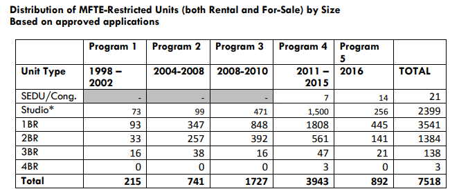 Table 1: 2015 MFTE Program Breakdown