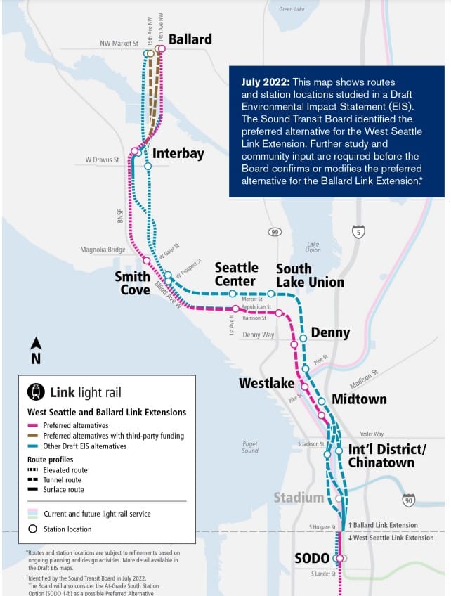 The board’s systems expansion committee will hear a “further studies results deeper dive” at its meeting on February 9 (see: earlier slides on the further studies for a foretaste). The full board is getting a community outreach summary on February 23. The system expansion committee is slated to send the agency’s recommendation to the board on March 9, culminating in a scheduled board vote on March 23 to set the preferred alternative for the Ballard Link Extension.