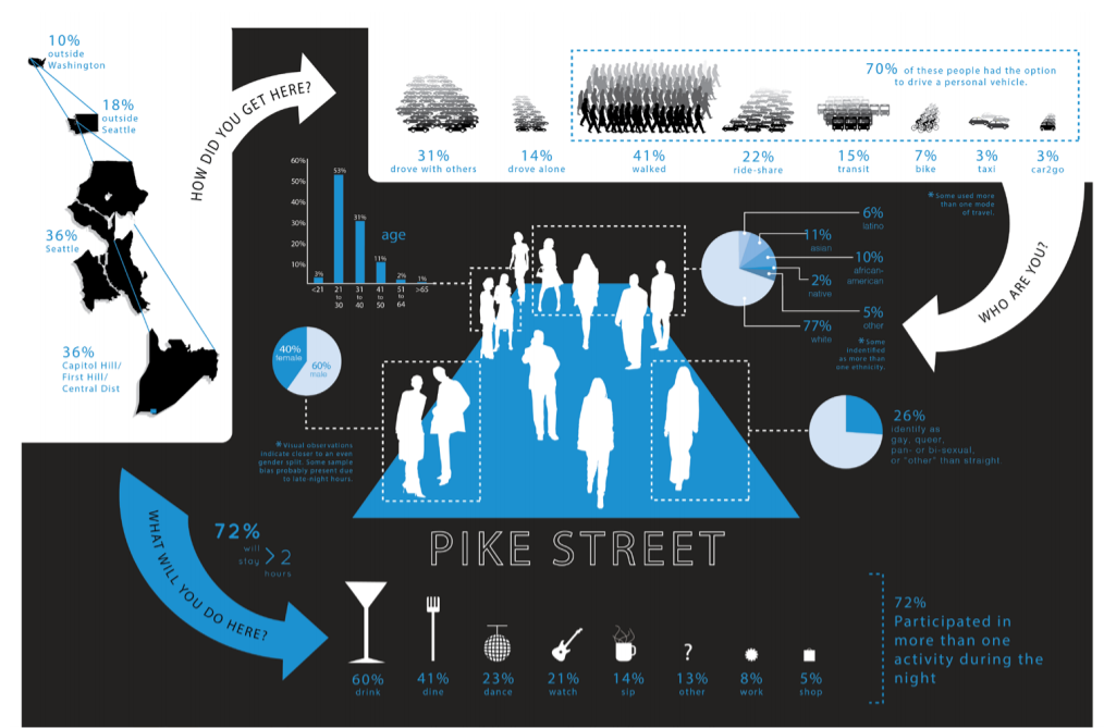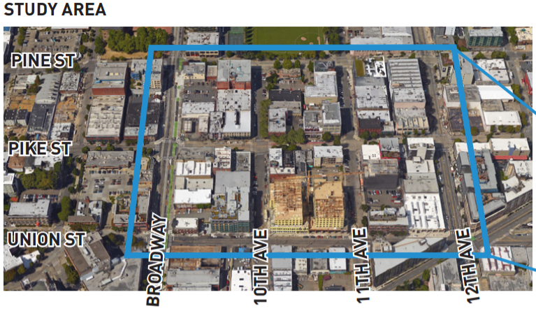 The selection of Pike Street suggests a nightlife and entertainment focus for Seattle’s first superille–it would be nice to see superilles added in more decidedly residential areas too–but the location would have the benefit of adjoining Cal Anderson Park and providing a pretty seamless and uninterrupted pedestrian corridor from Capitol Hill Station south to Union Street. And Pike Street being a major nightlife destination for the region could allow it be a good showcase and allow support for superilles to germinate around the city.