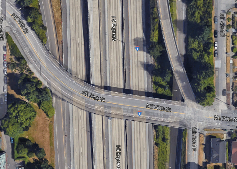 This will reduce travel lanes on the freeway overpass on 70th Street from 15 to 11 feet, making room for a protected bike lane in each direction. It would add curb extensions to either end of the bridge and square off intersections. Project cost would be $471K.