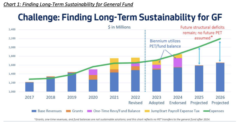 In addition to an as-yet-unknown amount of back pay owed, this 23% raise is also expected to impact the 2025 budget deficit, which is already estimated to be $241 million, taking into account the recently approved contract with the Coalition of City Unions. And we can expect to see the overall portion of the city’s general fund that is spent on SPD continue to balloon, which has the effect of defunding investments in other areas, which could include housing, transportation, social services, and gun violence prevention programs.
