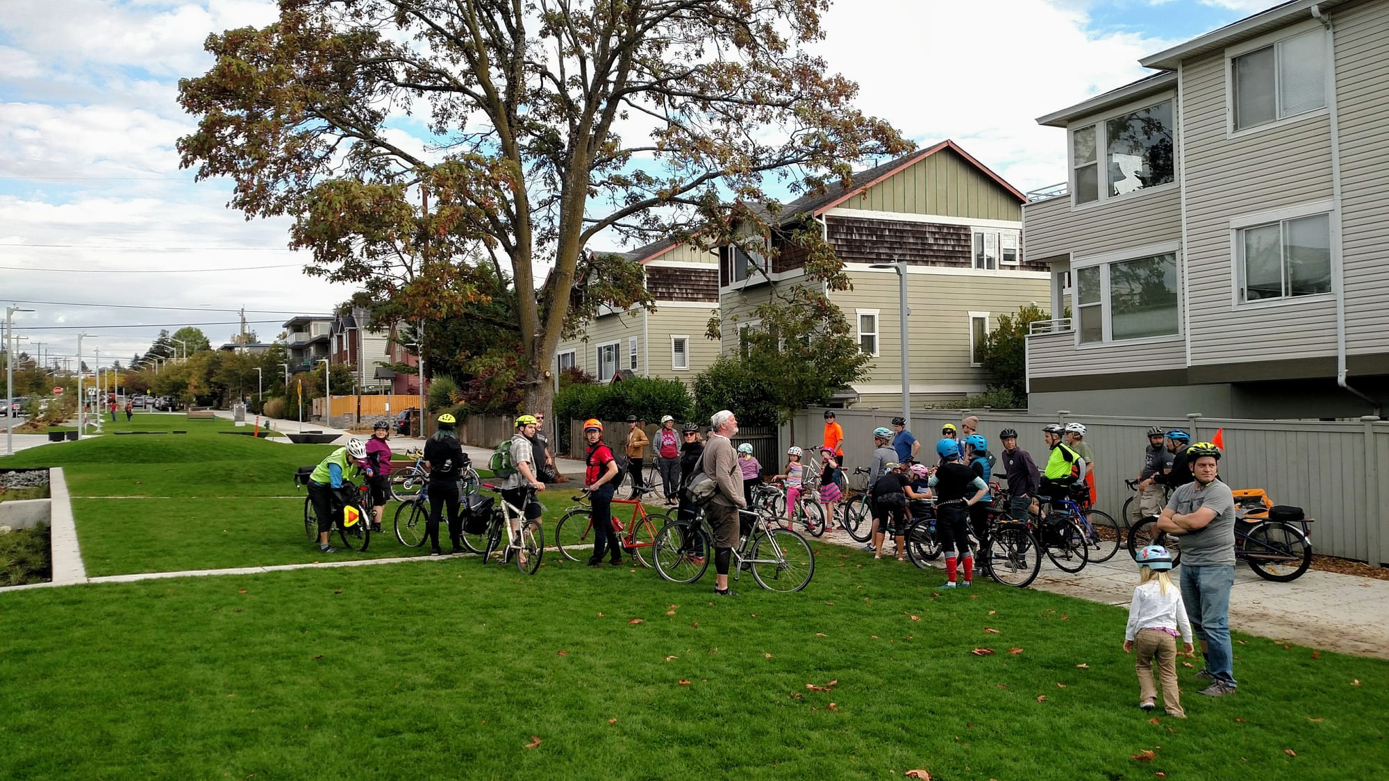 We stopped on 14th Ave NW, former streetcar route, at Gemenskap Park, which was funded by the 2008 parks and Green Spaces Levy.