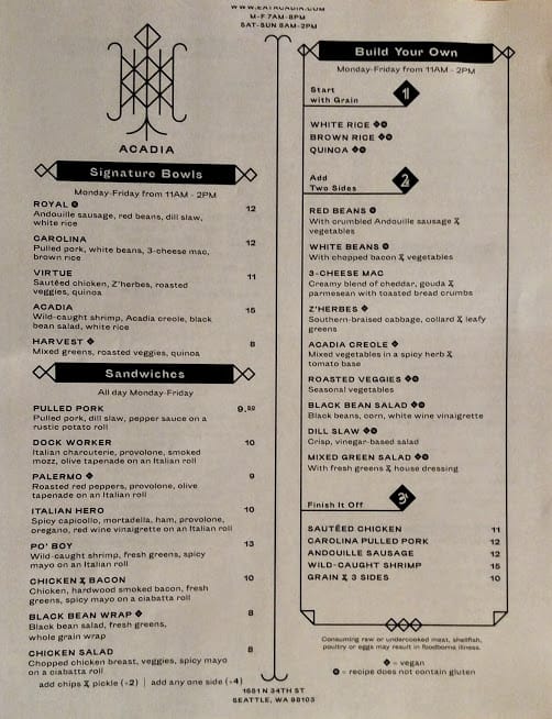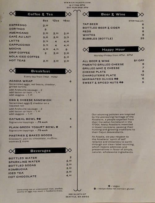 Acadia’s menu is below if you care to peruse.